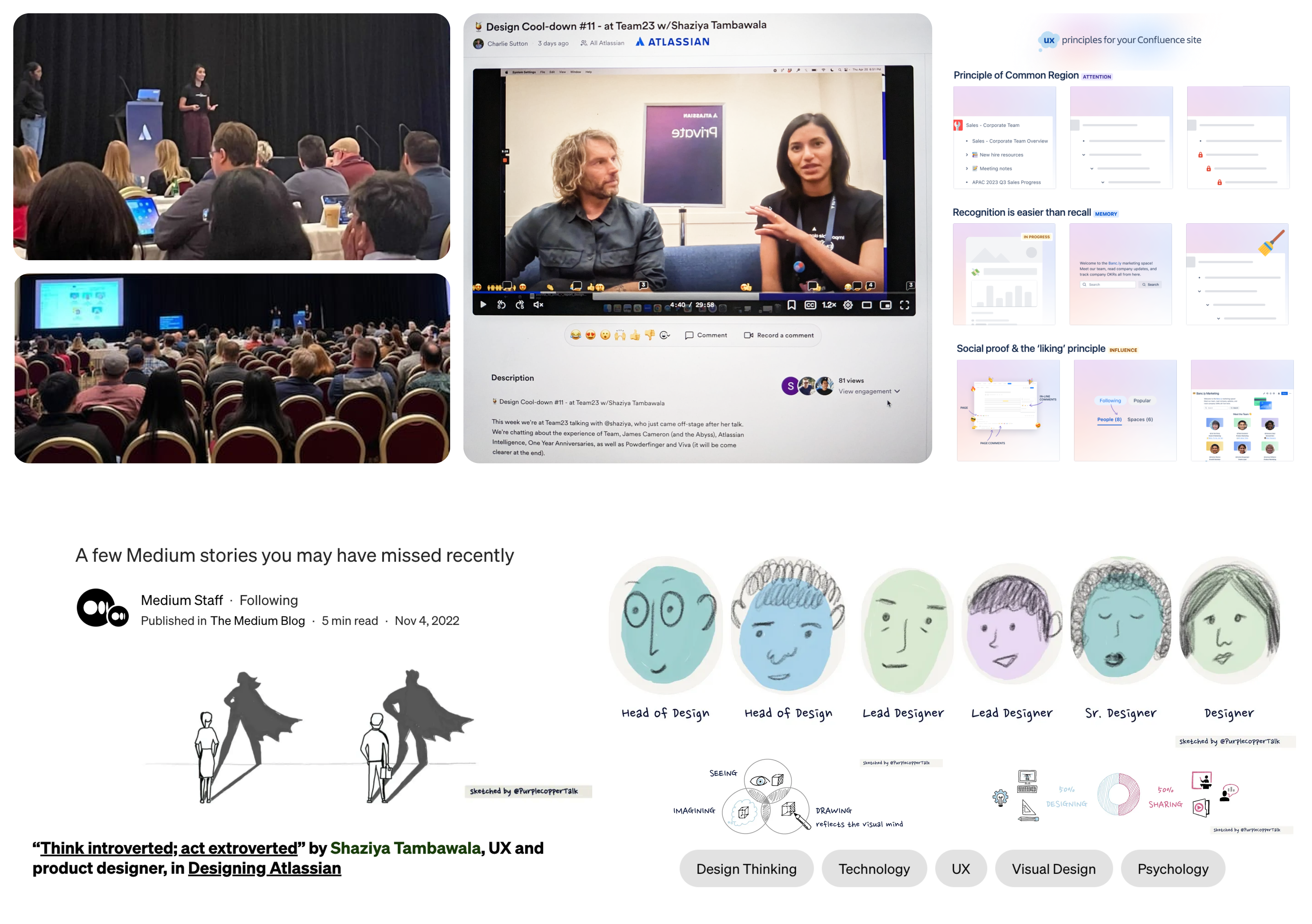 This talk was about a UX-driven approach for product champions to promote usage in their teams and was given at Atlassian’s TEAM ‘23 conference. While doing customer interviews for the External Collaboration feature, there were repeated questions about “How do I structure my Confluence site?” “Should I create a space for that content?” Essentially, customers wanted an easy to navigate and scalable site structure. And because there are no simple answers to those questions, I drafted this talk with the goal of balancing prescriptive solutions with principle-guided, behavioural shifts for the audience of largely product champions to apply.